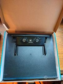 rialzo per Notebook con due ventole, si collega al Notebook con presa USB e lo tiene leggermente rialzato e raffrescato tramite due ventole, in più la base ha quattro prese USB, quindi collegandoci il Notebook si utilizza una presa USB Ma se ne guadagnano 4.