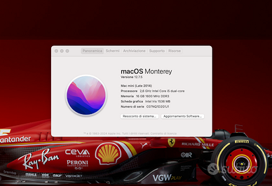 Mac mini (Fine 2014) processore: 2,6 GHz Intel Core i5 dual-core memoria 16 gb hdd 512 MacOs Monterey Con scatola originale.
