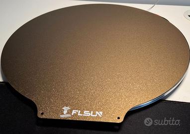 Ricambio piatto completo originale FLSUN V400 funzionante. Completo di piatto da 300mm di diametro, riscaldatore originale a 24V e sonda termica, magnete superiore.