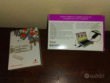 HAUPPAUGE WINTV-HVR 900-HD (HYBRID TV STICK) CHIAVETTA USB CHE PERMETTE DI GUARDARE E REGISTRARE LA TV DIGITALE TERRESTRE E ANALOGICA DIRETTAMENTE SUL COMPUTER. MODELLO: WINTV-HVR 900-HD. CARATTERISTICHE: SUPPORTA MPEG-2 E MPEG-4 HDTV READY (ALTA DEFINIZIONE). CONDIZIONI: COMPLETA DI SCATOLA ORIGINALE. + VODAFONE INTERNET KEY (HUAWEI K3765) CHIAVETTA USB PER CONNESSIONE INTERNET MOBILE. MODELLO: HUAWEI K3765 HSUPA (BRANDIZZATA VODAFONE). COLORE: BIANCO. STATO: INCLUSA CUSTODIA PROTETTIVA ORIGINALE.