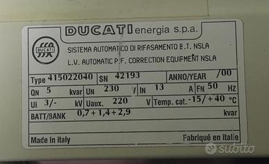 Vendo rifasatore ducati trifase come da foto completo di 3 trasformatori di corrente modulari ABB TRFM/60.