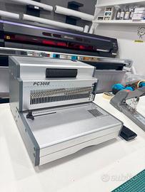 Rilegatrice a spirale continua coil con meccanismo elettrico per la perforazione dei fogli e per l’inserimento della spirale.