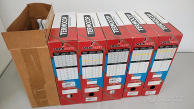 Rilegatrice termica professionale Tosingraf modello TERMOPROF 40, ideale per uffici, copisterie e piccole tipografie. Usata forse una decina di volte da quando è stata acquistata, perfettamente funzionante. Consente di rilegare documenti fino a 40 mm di spessore, pari a circa 400 fogli, utilizzando copertine termiche preincollate. Dotata di chiusura automatica della morsa, vibrazione per l’allineamento dei fogli, controllo automatico della temperatura a 150 °C e tempi di rilegatura regolabili da 30 a 120 secondi. Dispone inoltre di ventola di raffreddamento con supporto per mantenere i documenti perfettamente in piano. A corredo anche diverse copertine termiche originali Tosingraf/Thermovegar e GBC, vari spessori e colori (bianco e nero), ideali per rilegare documenti da circa 15 fino a oltre 265 fogli a seconda del dorso utilizzato. Materiale nuovo e in confezioni praticamente piene, utile per iniziare subito a utilizzare la macchina senza dover acquistare consumabili aggiuntivi. Spedisco in tutta Italia.