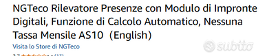 NGTeco Rilevatore Presenze con Modulo di Impronte Digitali, Funzione di Calcolo Automatico, Nessuna Tassa Mensile AS10(English)