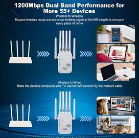 Ripetitore wifi 1200Mbps, Dual Band 5GHz & 2.4GHz e WPS, Amplificatore WiFi Potente Compatibile con Modem Router WiFi