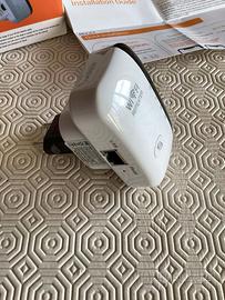 Vendo amplificatore ripetitore di segnale WiFi, extender di segnale wireless a 7 luci per la copertura domestica, compatibile con i router, prodotto nuovo con scatola e istruzioni. Colore bianco e nero.