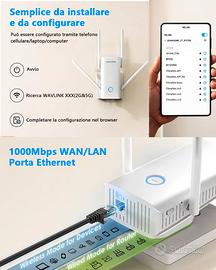 【Tutto Mesh e potenti antenne】 Utilizzate l'Amplificatore WiFi 6 per creare il vostro sistema WiFi Mesh su misura, che si integra perfettamente con altri router Mesh per migliorare la rete. Con 5 antenne ad alto guadagno da 5dBi, amplifica la potenza del segnale, garantendo una copertura estesa e la stabilità della rete.