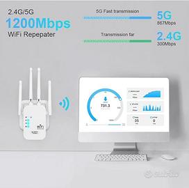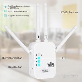 Ripetitore WiFi Extender 1200Mbps 5GHz/2,4GHz - Amplificatore WLAN Per Uso Ufficio e Domestico - Porta LAN, Modalità Ripetitore/Router/AP