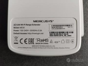vendo per non utilizzo,ripetitore wifi Mercusys me 30 AC 1200, vendo a 12 euro . Paolo