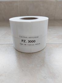 ROTOLO DA 3000 ETICHETTE F.TO 30x25, PPL, 2 PISTE PREZZO: € 16,66 cadauno Colore: bianco diametro interno: 40 mm diametro esterno: 87 mm Quantità disponibile: 10 rotoli Possibilità di ritiro in zona. Spese di spedizione dipendenti dalla quantità acquistata. Se desideri etichette adesive in altri formati non esitare a contattarci!
