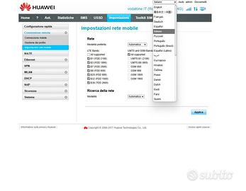 Vendo router 4G+ Huawei B528S-23A perfettamente funzionante con le sim di tutti gli gestori. Sul router è stato caricato un firmware multilingue che sblocca nuove funzionalità è possibilità di bloccare le bande, porta RJ11 sbloccata per poter fare e ricevere le telefonate.