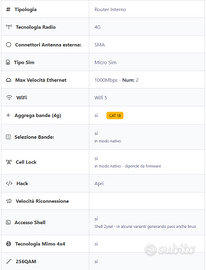 E' un router modem 4G+ di Categoria 18 che offre prestazioni elevate, particolarmente apprezzato dagli utenti per la sua capacità di aggregare fino a quattro bande LTE e per le opzioni avanzate di configurazione, come la possibilità di selezionare manualmente le bande (cell lock).