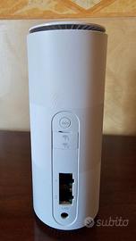 Porte fisiche: 2 porte Ethernet RJ45 Gigabit (10/100/1000Mb/s, configurabili LAN/WAN); 1 porta telefonica RJ11 (per VoIP/VoLTE); 2 connettori TS-9 per antenne esterne 5G (attivi in modalità 5G SA); 1 porta USB-C (per scopi di assistenza/servizio); ingresso DC per alimentazione.
