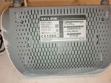 Tp-LINK TD-W9970. Banda Wi-Fi: Banda singola (2.4 GHz), Wi-Fi standard: Wi-Fi 4 (802.11n), Intervallo di trasferimento dei dati WLAN (max): 300 Mbit/s. Tipo di interfaccia LAN Ethernet: Fast Ethernet, Standard di rete: IEEE 802.11b,IEEE 802.11g,IEEE 802.11n,IEEE 802.3,IEEE 802.3u, Velocità trasferimento Ethernet LAN: 10,100 Mbit/s. Algoritmi di sicurezza supportati: 128-bit AES,128-bit WEP,192-bit AES,256-bit AES,3DES,64-bit.... Colore del prodotto: Bianco. Tipo di antenna: Esterno, Livello di guadagno dell'antenna (max): 5 dBi
