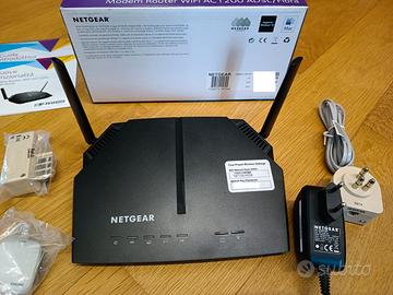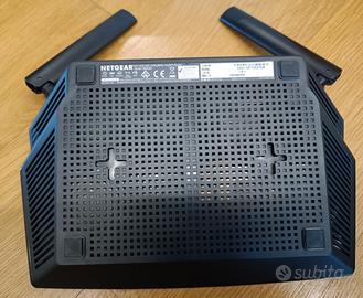 Il modem router DSL ad alta velocità WiFi NETGEAR D6220 con dual band Gigabit è un modem router incredibilmente veloce che assicura velocità Gigabit Ethernet e WiFi AC1200. Questo modem router DSL dispone di un modem VDSL veloce e funziona anche con connessioni ADSL. Offre prestazioni estremamente elevate in copertura wireless per case di grandi dimensioni con 10 o più dispositivi. Con questo modem router D6220 si ottiene un accesso 3 volte più veloce e uno streaming più affidabile rispetto all'analoga tecnologia 802.11n. Fornisce la velocità e l'affidabilità necessarie per applicazioni quali streaming video HD multiplo, uniforme e senza rallentamenti, gaming multigiocatore, ultra-velocità per una connessione a Internet sicura e affidabile. Tecnologia WiFi dual band simultanea, fornisce due reti WiFi separate: a 2,4 GHz per i dispositivi più vecchi e a 5 GHz, meno soggetta ad interferenze per i flussi multimediali. Gestisci la rete con l'app NETGEAR genie®, un pannello di comandi personalizzato e basato su icone per il controllo e il monitoraggio di tutti i dispositivi. Banda Wi-Fi: Dual-band (2.4 GHz/5 GHz), Wi-Fi standard: Wi-Fi 5 (802.11ac), Intervallo di trasferimento dei dati WLAN (max): 300 Mbit/s. Tipo di interfaccia LAN Ethernet: Gigabit Ethernet, Velocità trasferimento Ethernet LAN: 10,100,1000 Mbit/s, Tecnologia di cablaggio: 10/100/1000Base-T(X). Algoritmi di sicurezza supportati: WPA,WPA2,WPA2-PSK. Protocollo di routing: IP, Protocolli VoIP: IPv6 Consente la creazione di una VPN (funziona come Server VPN). Consente di programmare lo spegnimento automatico del segnale WiFi negli orari che si desiderano. Il router è dotato di - 4 porte Giagbit LAN e 1 porta Giabit WAN. - 1 porta USB 2.0 - 2 antenne esterne per trasmissione segnale WiFi - pulsante di reset e pulsante di accensione/spegnimento Usato ma in perfette condizioni e correttamente funzionante.