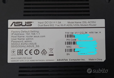 Vendo ASUS DSL-AC55U – modem router dual band AC1200, affidabile e performante. Caratteristiche principali: * Dual band simultaneo (2.4 GHz + 5 GHz) fino a 1200 Mbps * Supporto ADSL, ADSL2/2+ e VDSL (FTTC compatibile) * 4 porte LAN Gigabit + 1 porta WAN * Porta USB per condivisione file, stampanti o 3G/4G backup * Tecnologia AiRadar per migliorare copertura e stabilità Wi-Fi * Interfaccia ASUSWRT: gestione avanzata ma intuitiva * Controllo parentale e rete ospite configurabili * Ottima stabilità di connessione anche con più dispositivi Ideale per streaming HD, smart working e uso domestico evoluto. Decisamente superiore ai modem standard degli operatori. Perfettamente funzionante. Contattami per dettagli. Anche Consegna a mano Zona Lecco Monza Piacenza Brescia Cremona #asus #fritzbox #tplink #dlink #router #modem #switch