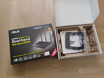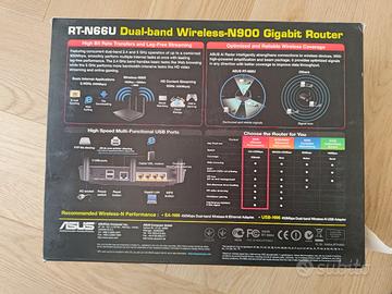 Router wireless dual-band (2,4 GHz e 5 GHz) con velocità fino a 900 Mbps complessivi. Interfaccia ASUSWRT intuitiva, 4 porte Gigabit e 2 porte USB