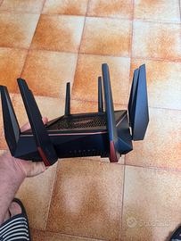 Router da gaming Asus in scatola originale caratteristiche: Standard Network: IEEE 802.11a, IEEE 802.116, IEEE 802.11g, IEEE 802.11n, IEEE 802.11ac 4x4 Tri-band MU-MIMO, 8porte Gigabit, Gaming Ports, Game Boost e Private Network, 2 porte USB 3.0, VPN Fusion, Dual WAN, Nero Sicurezza: 64-bit WEP, 128-bit WEP, WPA2-PSK, WPA-PSK, WPA-Enterprise, WPA2-Enterprise, Radius with 802.1x, WPS support Data Rate: 802.11a: fino a 54 Mbit/s 802.11b: fino a 11 Mbit/s 802.11g: fino a 54 Mbit/s 802.11n: fino a 600 Mbit/s 802.11ac: fino a 1.734 Mbit/s 1024QAM (2.4GHz) : fino a 1.000 Mbit/s 1024QAM (5GHz): fino a 2.167 Mbit/s Antenne: 8 x 2 dB Connessioni: 8x RJ45 LAN-Port 1x RJ45 WAN-Port 2x USB 3.0 Lo cambio per passaggio a router con porta wan da 10 gbit Per altre info contattami