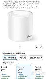 Vendo come nuovi non utilizzo più perché ho messo la fibra hanno ancora pellicola sopra come nuovi, preferisco consegna a mano in Torino o dintorni, valuto nel caso non trovassi nessuno qui vicino a spedizione. -TP-Link Deco X3000-5G Router con Sim, 5G Mesh WiFi 6, AX3000Mbps Dual Band, Modem Ultraveloce con Velocità Fino a 3.4 Gbps, Porta WAN/LAN da 2.5 Gbps, Alexa, -TP-Link Deco AX1500 Mesh Wifi AX1500 Mbps, Dual-Band, Wi-Fi 6, 2 Porte Gigabit, HomeShield, 2x2 MU-MIMO, OFDMA, 2 Antenne Interne, Beamforming, Latenza Ultra Bassa, Coperto fino a 190 m2.