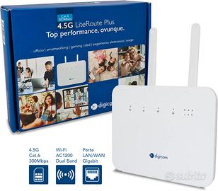 Digicom 4G+ LiteRoute Plus Router 4.5G CAT6 300Mbps, Wi-Fi AC1200 Dual-Band, 4 Porte (3LAN - 1LAN/WAN) Gigabit