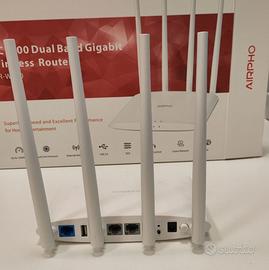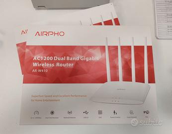 access point + router, 2 LAN, 1 WAN, 4 antenne fisse 5 dB NUOVO! VENDO PER DOPPIO ACQUISTO - Aperto per testare funzionamento caratteristiche: L'AR-W400 è dotato della nuova generazione di Wi-Fi 802.11ac che offre velocità wireless ultraveloci fino a 1200 Mbps con due bande selezionabili da 2,4 GHz e 5 GHz. A differenza di un router Wi-Fi standard, il processore dual-core può gestire più attività cablate o Wi-Fi contemporaneamente, migliorando notevolmente le prestazioni complessive della rete. - Le quattro antenne esterne omnidirezionali estendono il raggio d'azione per ottimizzare la trasmissione del segnale, aumentando la copertura e l'affidabilità della rete wireless. In altre parole, l'AR-W400 è la scelta ideale per gli utenti che sono alla ricerca di streaming video HD senza ritardi o di esperienza di gioco online. Il router wireless dual-band AR-W400 AC1200 supporta diverse funzionalità avanzate quali QoS, Parental Control, Guest Network e IPv6. Queste funzionalità consentono di ottimizzare l'ambiente di rete garantendo al contempo la sicurezza della rete. Così si può avere esperienze sicure, fluide e stabili su tutti i vostri dispositivi.