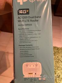 MODELLO: ARCHER MR505 4G+ Cat6 AC1200 Wireless Dual Band Gigabit Router S/N: 22494B7002269 EU/10 MAC: DC:62:79:E1:37:5C Wireless Password/PIN: 99058326 SSID: TP-Link_375C SSID: TP-Link_375C_5G IMEI: 860246060306188 MODELLO: RE315 AC1200 Wi-Fi Range Extender S/N: 224BOX0009475 EU/10 MAC: 30-68-93-D7-BD-72 SSID: TP-Link_Extender Vendo per nuova linea internet. Vendibile anche separatamente.