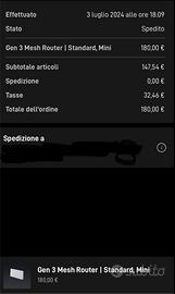 Il router Gen 3 offre la nostra migliore esperienza WiFi, con la più recente tecnologia WiFi 6 e tre bande separate per la trasmissione dei dati. Superpotente, offre velocità eccezionalmente elevate, gestisce più dispositivi con facilità e garantisce un'esperienza di streaming, gaming online e navigazione senza interruzioni. Grazie a un'area di copertura di circa 185 metri quadrati per router**, puoi godere di una connettività veloce e affidabile.