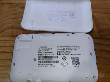 Modem router 4G LTE Huawei E5771s-856 ricevuto in regalo e mai usato, con batteria da 9600mAh che a manuale garantisce 38 ore di autonomia in uso. Questo modello costa oltre 100 euro, siccome non lo uso vendo a soli 35 euro non trattabili. E' nuovo, mai usato. Per specifiche e compatibilita' con operatotari vedete online perche' non le conosco. Preferito ritiro a mano