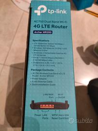router modem TP link archer mr 200 4G sim ideale per connessioni a bassissimo costo senza vincoli tramite SIM anche ricaricabili con tutti i gestori. istallazione semplicissima completo di confezione originale, alimentatore ed antenne spedizione rapida vendita da privato e priva di garanzia