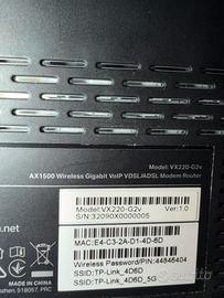 Vendo router/modem TP-Link VX220-G2V, ideale per chi cerca una connessione stabile, veloce e di ultima generazione grazie allo standard Wi-Fi 6 (802.11ax). Il dispositivo è perfetto per lo smart working, il gaming o lo streaming in 4K, garantendo una copertura eccellente e una gestione ottimale di molti dispositivi connessi contemporaneamente.