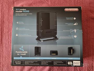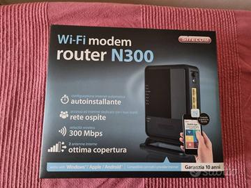 Completo di accessori, autoinstallante, velocita wireless 300Mbps, 2 antenne interne, compatibile con tutti i provider internet, Window, WPA 2 pre configurata, aggiornamento automatico, 4 porte ADSL2