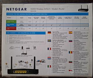 Eccellente modem router Netgear DGN2200v3 N300 ADSL2+ usato pochissimo, perfettamente funzionante, completo di scatola originale e accessori (alimentatore, cavo ethernet, cavo telefonico).