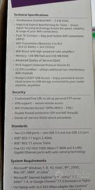 Completo di scatola e accessori e in ottime condizioni. Caratteristiche tecniche: Simultaneous Dual Band WiFi—2.4 & 5GHz • Implicit & Explicit Beamforming for 5GHz— Smart, signal-focusing technology boosts the speed, reliability, & range of your WiFi connections • Push ‘N’ Connect—Easy push button WiFi connections (WPS) • WiFi Transmitters/Receivers (Tx/Rx) - 3x3 (2.4GHz) + 3x3 (5GHz) • WiFi Boost with high-powered radio amplifiers • Memory: 128 MB flash and 256 MB RAM • Advanced Quality of Service (QoS) • IPv6 support (Internet Protocol Version 6) • ReadyCLOUD ® USB Access—Enjoy personal & secure cloud access to USB storage connected to your Nighthawk WiFi Router anytime, anywhere Standards • Two (2) USB ports—one USB 3.0 and one USB 2.0 port • IEEE ® 802.11 b/g/n 2.4GHz • IEEE 802.11 a/n/ac 5GHz • Five (5) 10/100/1000 (1 WAN and 4 LAN) Gigabit Ethernet ports with auto-sensing technology System Requirements • Microsoft ® Windows 7, 8, Vista ® , XP®, 2000, Mac OS® , UNIX® , or Linux ® • Microsoft ® Internet Explorer ® 5.0, Firefox ® 2.0, Safari ® 1.4, or Google Chrome™ 11.0 browsers or higher • Use laptop with 3x3 450 Mbps adapter like Centrino ® 6300/5300, or 802.11ac adapter like NETGEAR A6200 for maximum performance Security • Customized free URL to set up personal FTP server • VPN support—Secure remote access • WiFi Protected Access ® (WPA/WPA2—PSK) • Double firewall protection (SPI and NAT firewall) • Denial-of-service (DoS) attack prevention