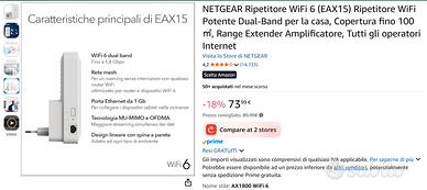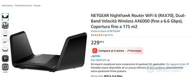 Perfettamente funzionante usato in un appartamento di 120 metri quadri per circa 2 anni senza problemi arriva dappertutto anche con molte periferiche connesse contemporaneamente, Netgear non si discute per me e il massimo in questo campo. Avendo 3 bande (2 a 5 Ghz e 1 a 2,4 Ghz) non si hanno problemi di nessun genere e la tecnologia wi fi 6 lo fa volare e può essere gestito da remoto. Come da immagine attualmente su Amazon costa € 229 controllate, Aggiungo il suo extender Mesh sempre Netgear AX1800(Aumenta notevolmente il campo di azione) che attualmente su Amazon costa € 73 per un totale che supera i 300 euro chiedo 100 euro non trattabili visto di cosa stiamo parlando