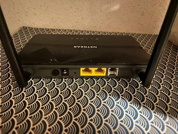 Router netgear con suo alimentatore senza scatola. Ha porta wan/lan e porta per dsl