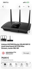 Linksys EA7300 Router WLAN WiFi 5 mesh dual band AC1750 Max Stream, router MU-MI in condizioni ottime, copertura wifi molto estesa sia in 2,4 ghz che in 5 ghz.