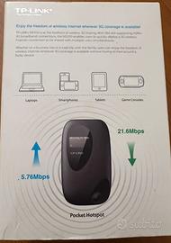 TP-Link M5350, un router portatile 3G Mobile Wi-Fi. Questo dispositivo è progettato per creare un hotspot Wi-Fi personale utilizzando una scheda SIM, permettendo di condividere la connessione internet con più dispositivi contemporaneamente.