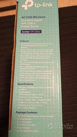 Causa passaggio a FTTH vendo router TP-LINK Archer 1200V con wifi dual band (2,4 - 5Ghz) supporto fino a 8 numeri VoIP compatibile VDSL2 ADSL2+ ADSL2 ADSL supporto USB per 3G e 4G nella sua confezione originale perfetto