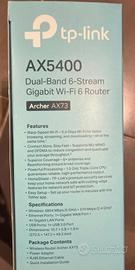 Router tp-link AX5400 Archer AX73 WI-FI 6 Dual-Band 6-Stream WPA3 Nuovo, mai usato causa incompatibilità con la mia rete di casa