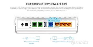 TP-Link EX820v è un Router Professionale Wi-Fi 6 (802.11ax) Port1 WAN: RJ45 da 2.5 Gbps. ad alte prestazioni con classe di velocità AX6000, progettato per gestire connessioni in fibra ottica ultra-veloci e servizi voce tramite VoIP. Router MAI USATO IN CONDIZIONI PARI AL NUOVO !! Quantità disponibile: 2 pezzi Nel caso sia necessaria la spedizione si richiede obbligatoriamente il pagamento anticipato tramite bonifico Istantaneo! Prestazioni Wireless Velocità Totale: Fino a 6.0 Gbps su doppia banda. 5 GHz: Fino a 4804 Mbps (4x4 flussi spaziali, supporto 160MHz). 2.4 GHz: Fino a 1148 Mbps (4x4 flussi spaziali). Tecnologie: Supporta MU-MIMO, OFDMA e 1024-QAM per gestire oltre 250 dispositivi contemporaneamente con bassa latenza. Mesh: Compatibile con lo standard EasyMesh per creare reti unificate in tutta la casa. Interfacce e Connettività Fisica Secondo i dati tecnici di TP-Link e rivenditori specializzati, il router include: Porte WAN: 1 porta RJ45 da 2.5 Gbps. Porte LAN: 1 porta RJ45 da 2.5 Gbps. 3 porte RJ45 da 1 Gbps. Porte Telefoniche: 2 porte FXS (RJ11) per il collegamento di telefoni analogici e chiamate VoIP. Porta USB: 1 porta USB 3.0 per la condivisione di file (Samba, FTP, Media Server). Sicurezza e Gestione Sicurezza Wireless: Supporta crittografia WPA3, WPA2 e WPA. VPN: Supporto integrato per protocolli PPTP, IPSec e OpenVPN. Gestione Remota: Supporta i protocolli TR-069, TR-181 e TR-369, permettendo ai service provider di gestire il dispositivo da remoto tramite la piattaforma Aginet. Controllo Genitori: Filtri per contenuti e gestione del tempo online. Dimensioni e Alimentazione Dimensioni: 214.9 × 178.2 × 73.3 mm. Alimentazione: Alimentatore esterno da 12V / 2.5A.