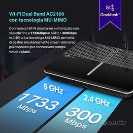 Wi-Fi Dual Band AC2100 – Velocità di connessione wireless fino a 1733 Mbps in 5GHz e 300 Mbps in 2.4GHz