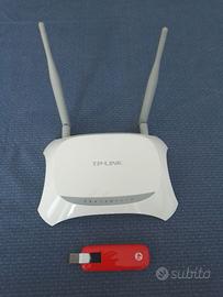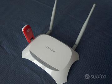 Router wi-fi TP-LINK modello TL-MR3420 con chiavetta 4G per condividere l'accesso ad Internet se si è sprovvisti di linea ADSL.