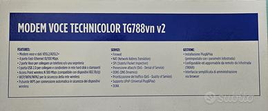 Modem Router WiFi, marca Technicolor modello TG788vn 2 porte voce, 4 porta lan, 1 usb