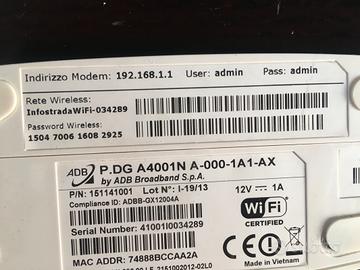 1. Router wifi ADSL (abgn) ADB Broadband (la "vela") originale WindTre con alimentatore. Non utilizzabile con fibra ottica. 4 porte LAN, 1 porta USB: 5€
