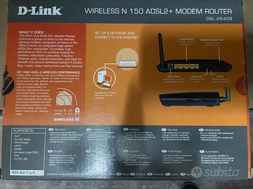 Vendo Router Wireless G ADSL 2+ con 4 Porte 10/100 - Modello D-LINK DSL-2640B Il Modem Router Wireless N150 ADSL2/2+ DSL-2640B rappresenta un dispositivo remoto ad alta velocità, affidabile ed economico, per la casa e il piccolo ufficio. Il router fornisce tutte le funzioni necessarie per instaurare una connessione Internet sicura e ad alta velocità da casa e dall'ufficio.