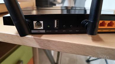 TP-Link Archer VR400 router wireless Gigabit Ethernet Dual-band (2.4 GHz/5 GHz) Wi-Fi ultra veloce - Fino a 1.2Gbps sprigiona tutto il potenziale della tua connessione Internet con una velocità Wi-Fi Dual Band fino a 1.2Gbps (300Mbps su 2.4GHz e 867Mbps su 5GHz), eliminando fastidiosi lag e buffering 4 porte LAN - 1 porta usb 2.0 - 1 porta RJ45 usato pochissimo in perfette condizioni non consente connessione alla fibra.