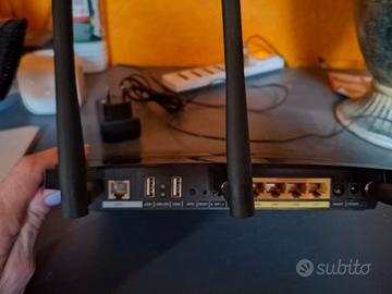 Router wireless TP-Link N600, ideale per la connessione internet domestica. - Design elegante e compatto. - Tre antenne per una copertura ottimale. - Indicatore LED di stato.