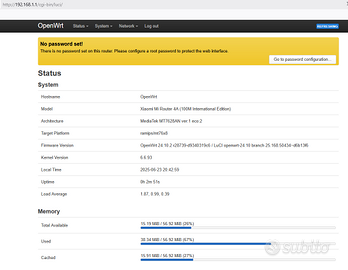 Vendo per cambio architettura di rete un bellissimo Router Xiaomi 4A 2.4GHz 5GHz WiFi 1200Mbps con Openwrt gia installato.