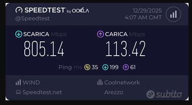 Router ZIXEL NR5103E 4G/5G Router 4g/5g Zyxel NR5103E con firm Svedese (non TRE o EE) con la particolarità unica di fare CELL LOCK su una bts specifica, il cell lock è utile quando attorno ci sono bts scarse e solo una buona, con il cell lock si può fissare la cella della bts buona, apn manuale, funzionante con tutte le SIM e tutte le frequenza 4G/5G utilizzate in Italia. - aggrega tutte le bande in 4G disponibili in Italia (1-3-7-20-28-32-38) - aggrega in 5g (n3-n28-n38-n78) - 4 connettori TS9 per antenne esterne (router unico ad averle), danno la possibilità di collegare un'antenna esterna per migliorare la qualità del segnale. - 2 porte lan ad alta velocità da 2,5gb - wifi 6 - ventola di raffreddamento interna per prevenire surriscaldamenti della cpu T750. Ottimo router 4g/5g da interno,con la possibilità di collegare antenne esterne per aumentare il raggio di azione. Router usato funziona perfettamente, router e alimentatore senza scatola. Controllate le recensioni, è il router da interno migliore. Aggiunto Speedtest.