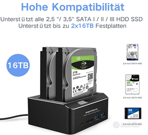 Supporta dischi rigidi 2x16 TB: lle basi per dischi rigidi SATA dual-bay possono collegare HDD e SSD SATA III da 2,5/3,5 pollici (retrocompatibile con SATAI SATAII), supporta 2x16 TB HDDs simultaneamente e il protocollo UASP